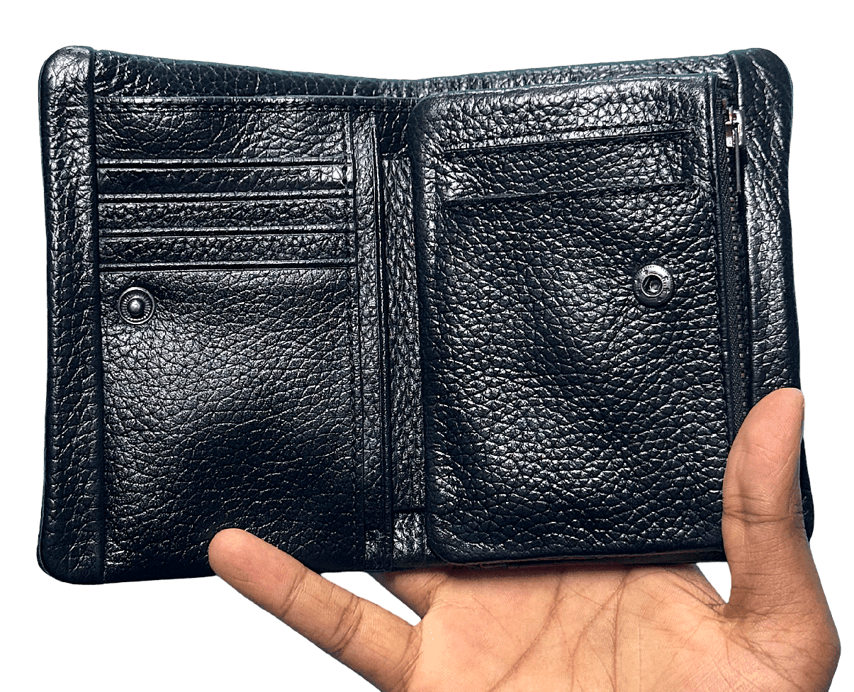 ব্যাংক ও বিজনেস কার্ড রাখার ১১ টি স্লট। জরুরি কাগজপত্র ও টাকা রাখার ২টি ক্যাশ পকেট।